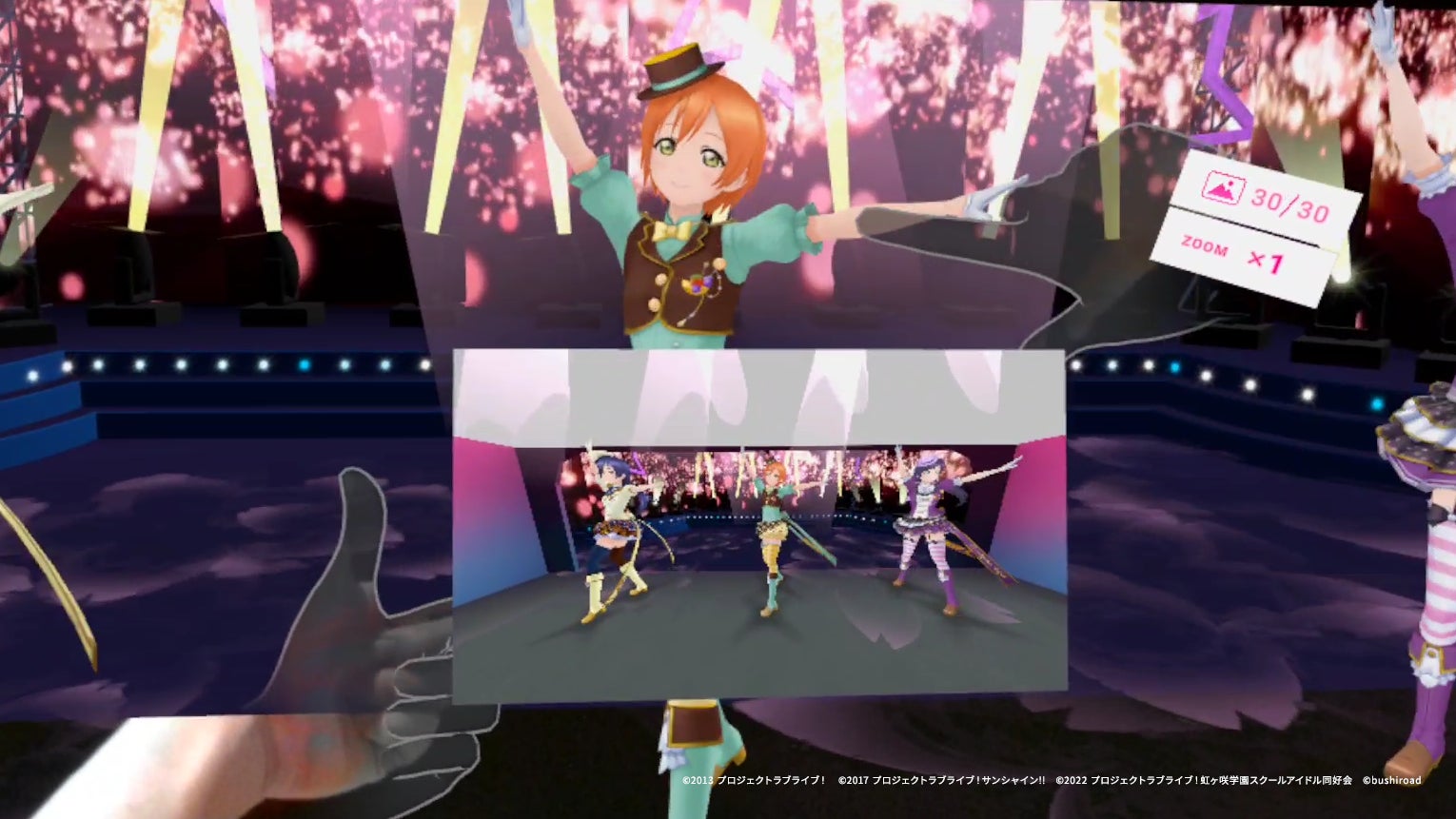 本イベントではMRデバイス「Meta Quest Pro」を装着し、「lily white」の「園田海未」、「東條希」、「星空凛」が歌う楽曲である、「微熱からMystery」、「春情ロマンティック」の二曲を最新デジタル技術により等身大で鑑賞いただけます。