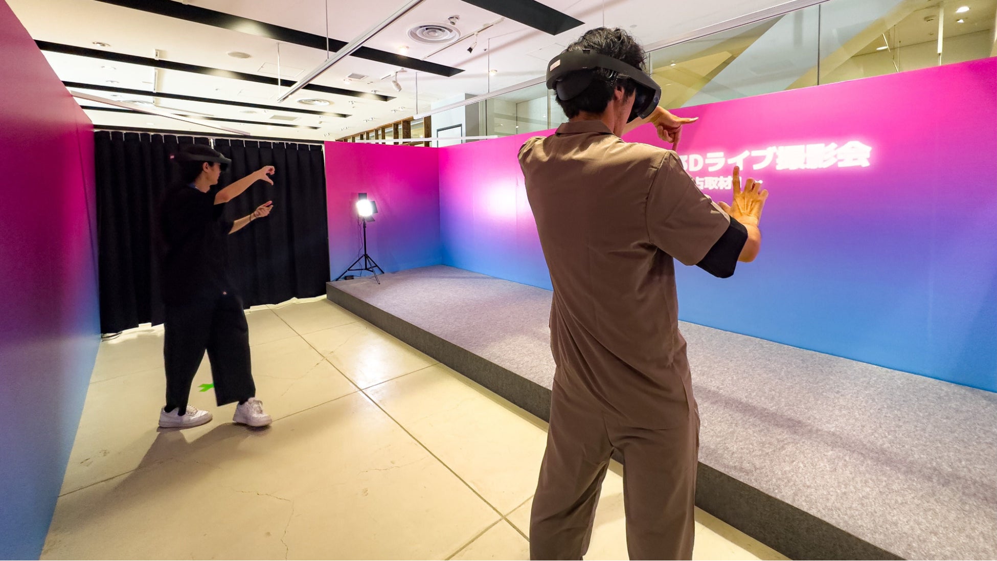 3Dライブ撮影会は、2023年6月30日(金)〜2023年7月9日(日)の期間中に大阪梅田のNU茶屋町で開催され、来場者はMRデバイス「Meta Quest Pro」を装着して「lily white」3人のライブを鑑賞できる他、メンバーを自由なアングルで撮影することができます。また、撮影した写真の中から好きな写真を最大3枚選び、現像してお持ち帰りいただけます。