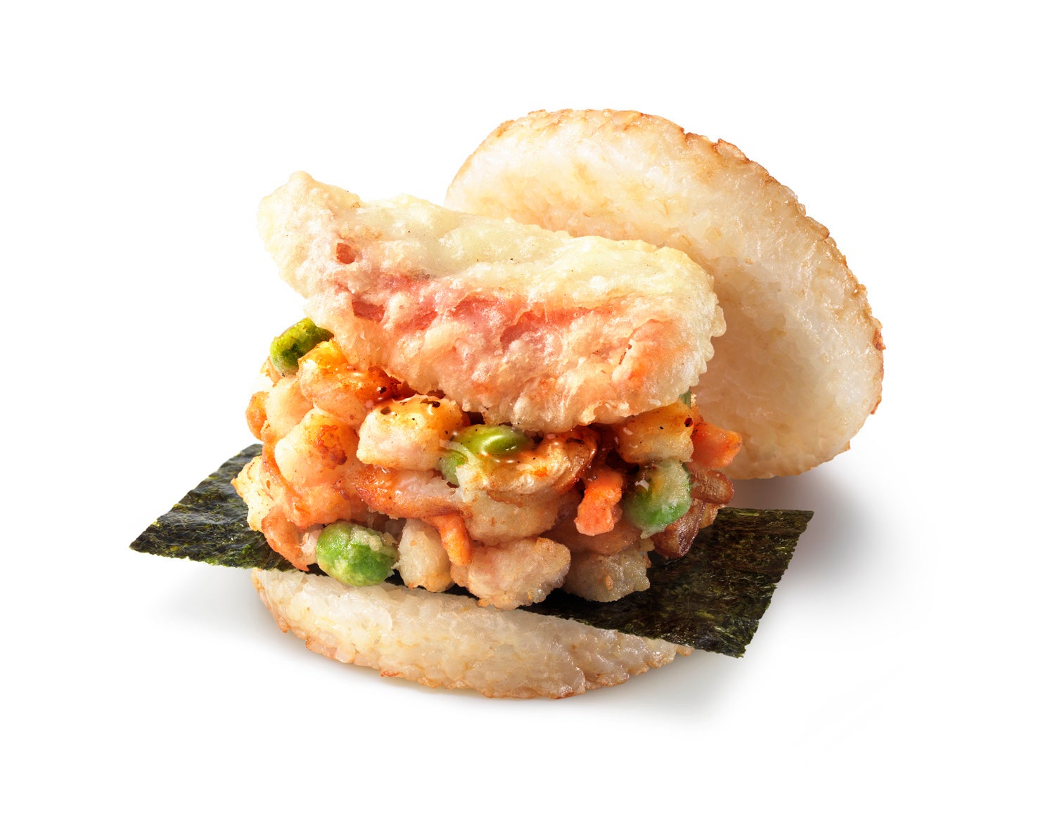 夜限定のプレミアムなライスバーガーでディナータイムを強化 「夜モスライスバーガー よくばり天 金目鯛とかきあげ(塩だれ)」「夜モスライスバーガー よくばり焼肉」