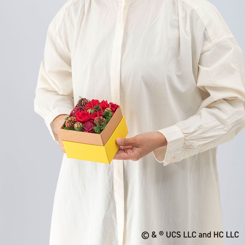 ボックスに描かれている「Life's better with you!」は、「あなたがいると、人生はもっと素敵になる!」という意味を込めています。お子様との楽しい日常やひとこまをいつまでも色褪せることなくそばに。飾るたびに、ほっこりする、あの笑顔がよみがえります。クリスマスギフトに赤バラやカーネーション、ドライの実物を合わせたプリザーブド&ドライフラワーアレンジメントはお手入れ不要で長く楽しむことができます。