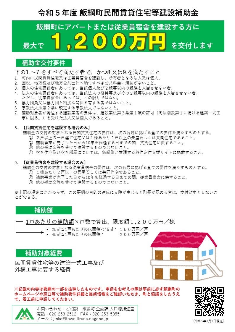 令和5年度 飯綱町民間賃貸住宅等建設補助金