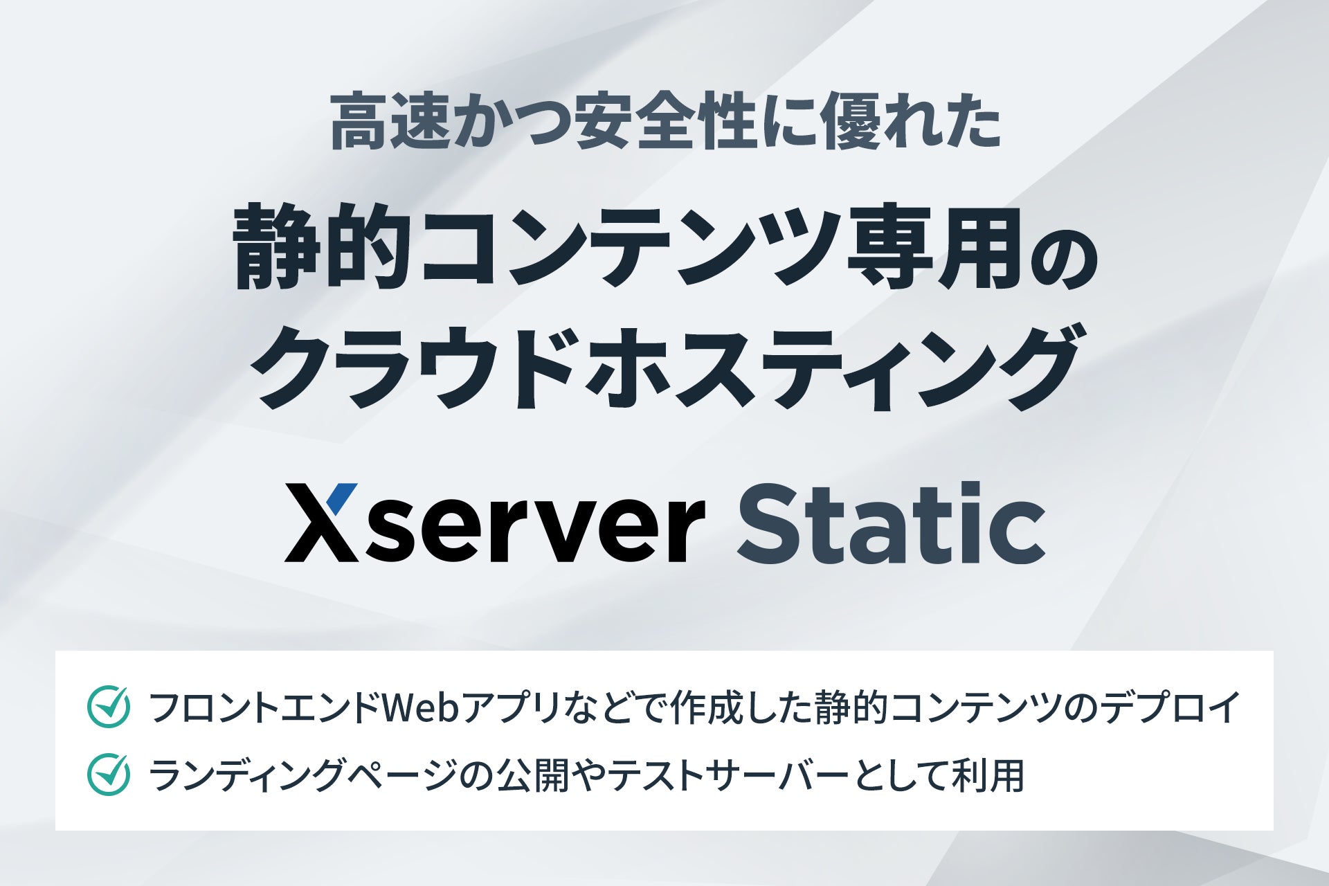 『Xserver Static』は、フロントエンドWebアプリやサイトジェネレーターで作成した、静的コンテンツをデプロイするのに役立ちます。また、ランディングページの公開やテストサーバーとして利用するなど、さまざまな用途に活用できます。