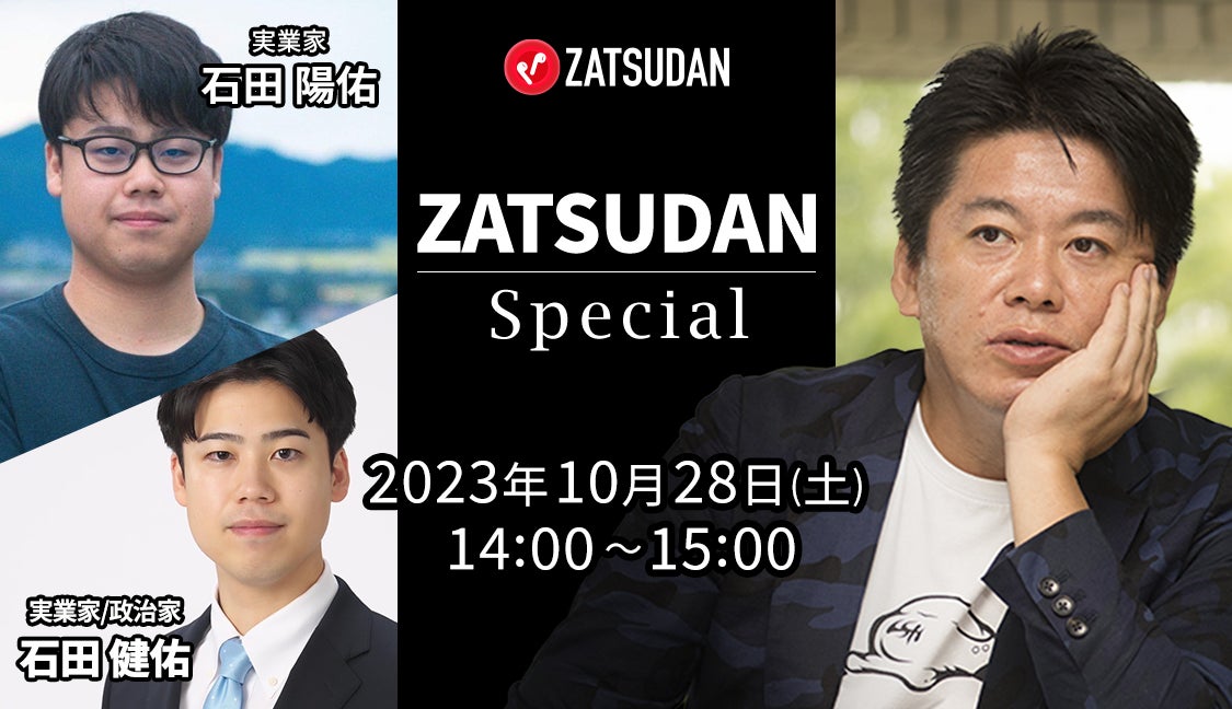 【ZATSUDAN】「堀江 貴⽂⽒ × 石田 陽佑氏 × 石田 健佑氏」 オンラインイベントのお知らせ