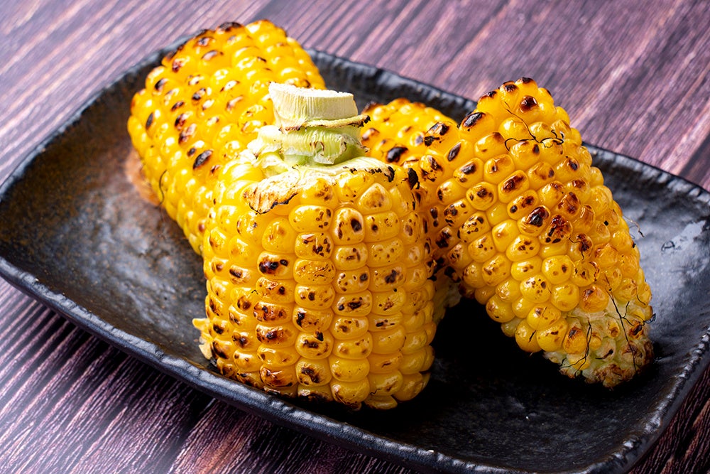 ■こだわり:札幌大通り公園の夏の風物詩、大通公園ワゴンを屋台を思わせる焼きとうきびは、醤油のほんのり焦げた香りが食欲をそそる一品。