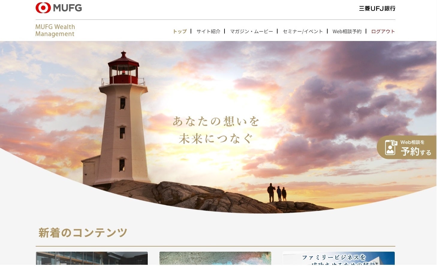 本メディアのコンテンツは、三菱UFJ銀行ホームページ内のウェルスマネジメント・ブランドサイト上で一部公開していますが、会員登録[2]をすると全ての情報コンテンツをご利用いただくことが可能です。