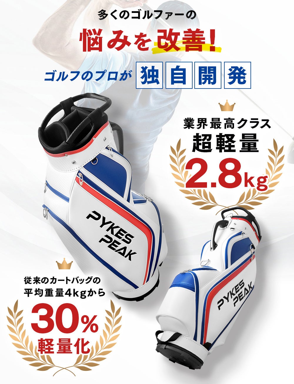 【ブランド販売数年間130,000個突破!】PYKES PEAKから待望の超軽量・本格PUカート式キャディバッグが新登場!快適性と機能性を追求したスタイリッシュな最新キャディバッグ