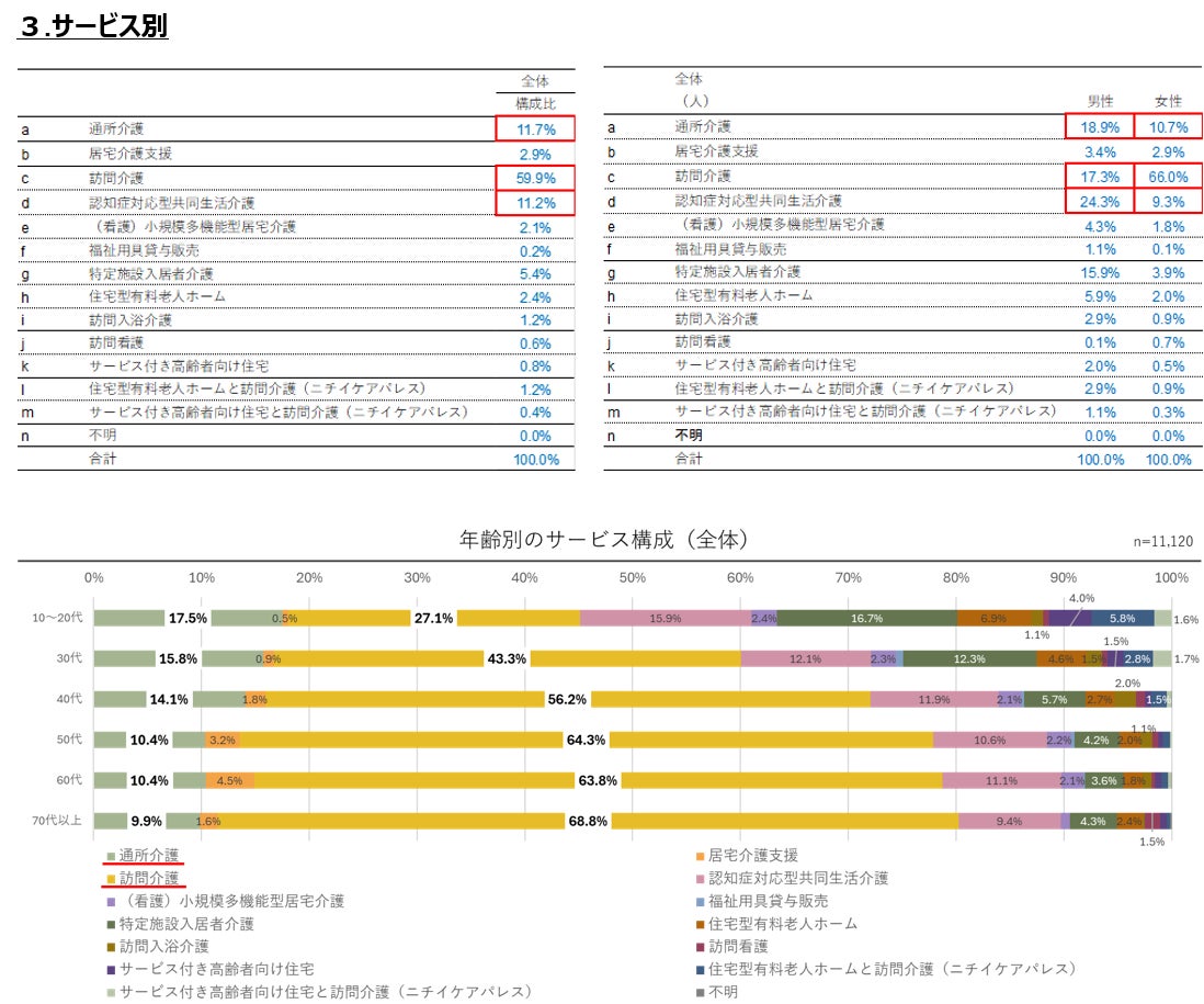 以下に、ニチイグループ内で従事する職員が多い通所介護、訪問介護、認知症対応型共同生活介護の3つのサービスの結果について記載します。