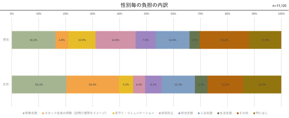男性は、1位「移乗支援」、2位「徘徊防止」、3位「入浴支援」の順となりました。