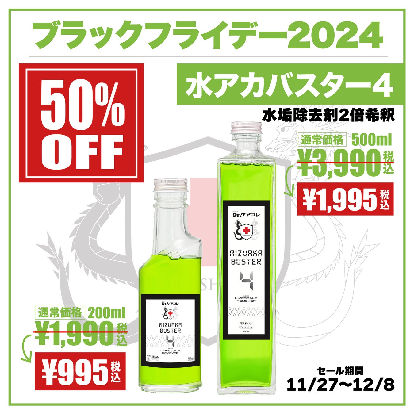 ・そんなスパシャン製品の中から頑固な水垢汚れやコーティングのリセットに使える人気商品「水アカバスター4」が50%OFF