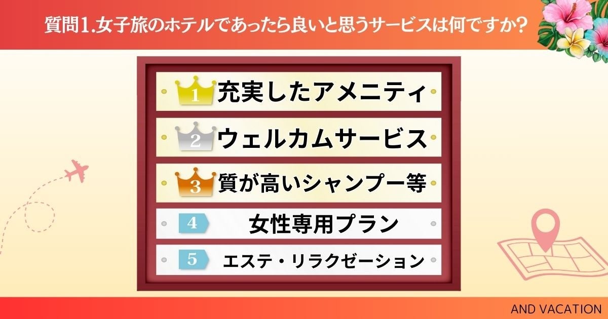 【5月女子旅に行く人に質問】ホテルにあったら良いサービスは?|沖縄旅行&リゾート・ホテル情報サイトがアンケート