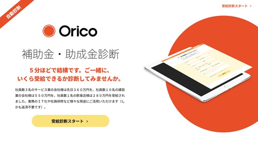 「オリコ補助金・助成金自動診断サービス」の提供を開始
