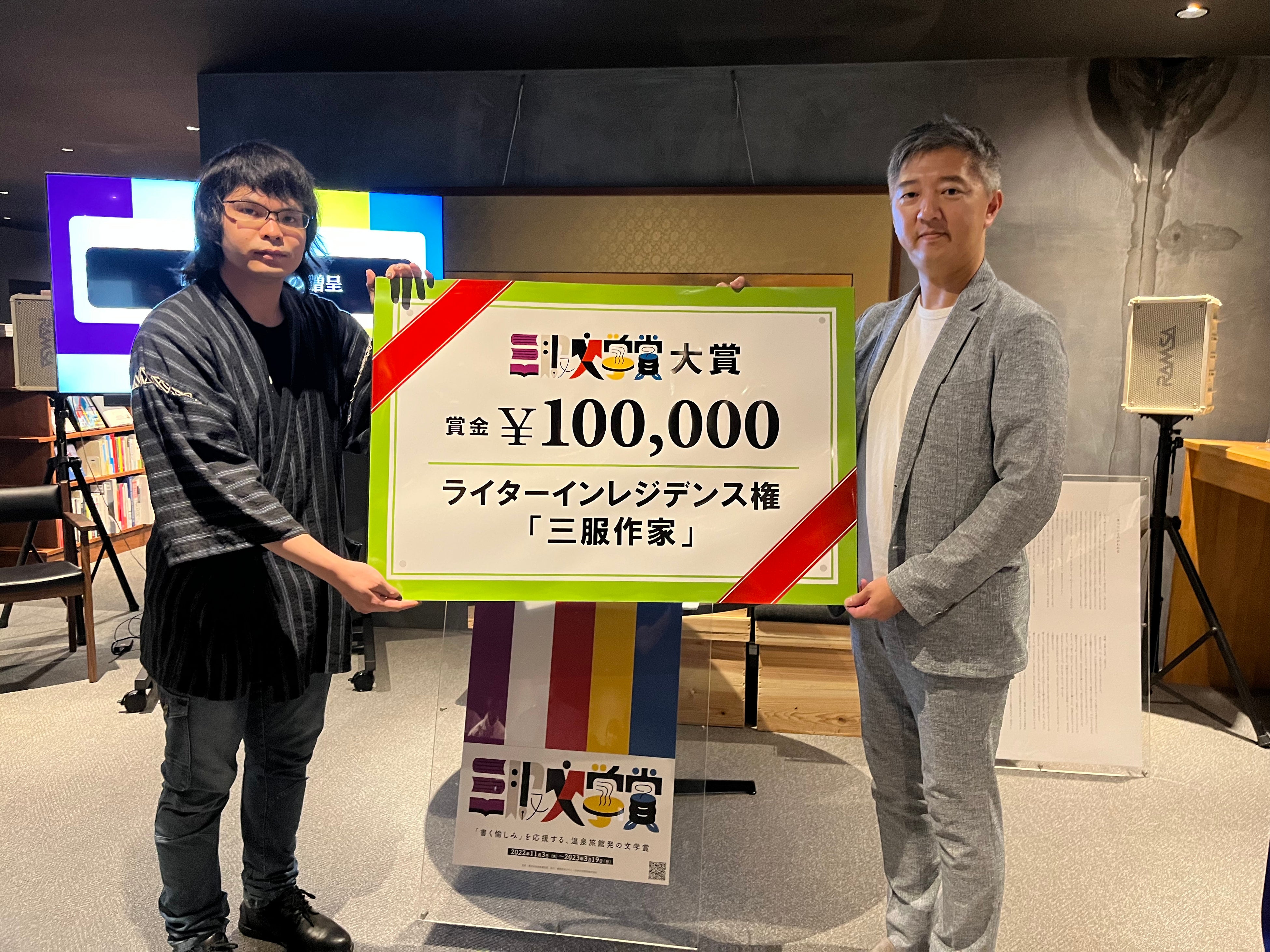 大賞受賞者には“三服作家”としてライターインレジデンスの権利を進呈。和多屋別荘に宿泊し、三服で執筆活動を行う権利が1年間得られるなど和多屋別荘があなたの執筆活動を全面的に応援します。
