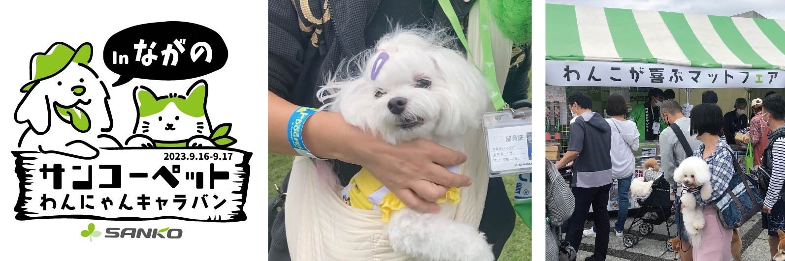 「ペットとのより快適で健やかな暮らしの実現のため、サンコーの商品をもっと多くの方に知っていただきたい」そんな想いで、サンコー社員が全国各地のイベントに参加して回る活動です。昨年は約20件ものイベントに参加させていただき、1日で商品がほぼ完売することもありました。今後も飼い主様やわんちゃん・ねこちゃんとの出会いを大切に、活動を続けてまいります。