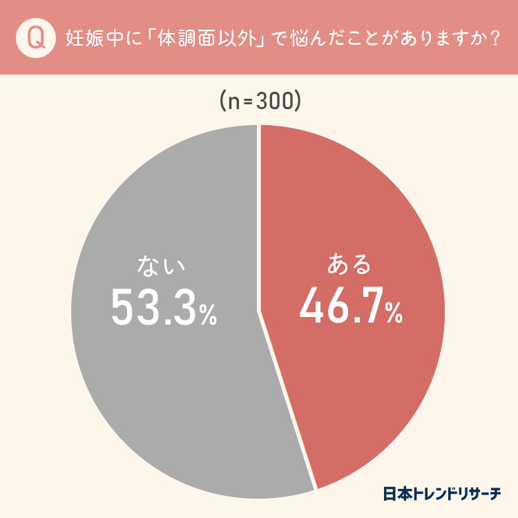 ■46.7%が妊娠中に「体調面以外」で悩んだことがある