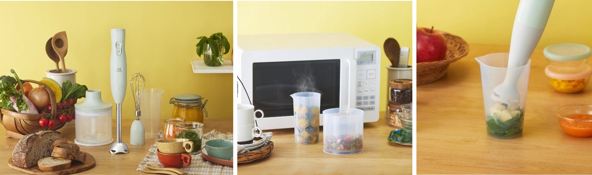気の遠くなるような離乳食づくりの作業も、マルチスティックブレンダー2を使えば数十秒で完了します。「Babyブレード カップセット」を使えば少量の食材でもムラなく攪拌でき、初めての離乳食づくりをサポート!