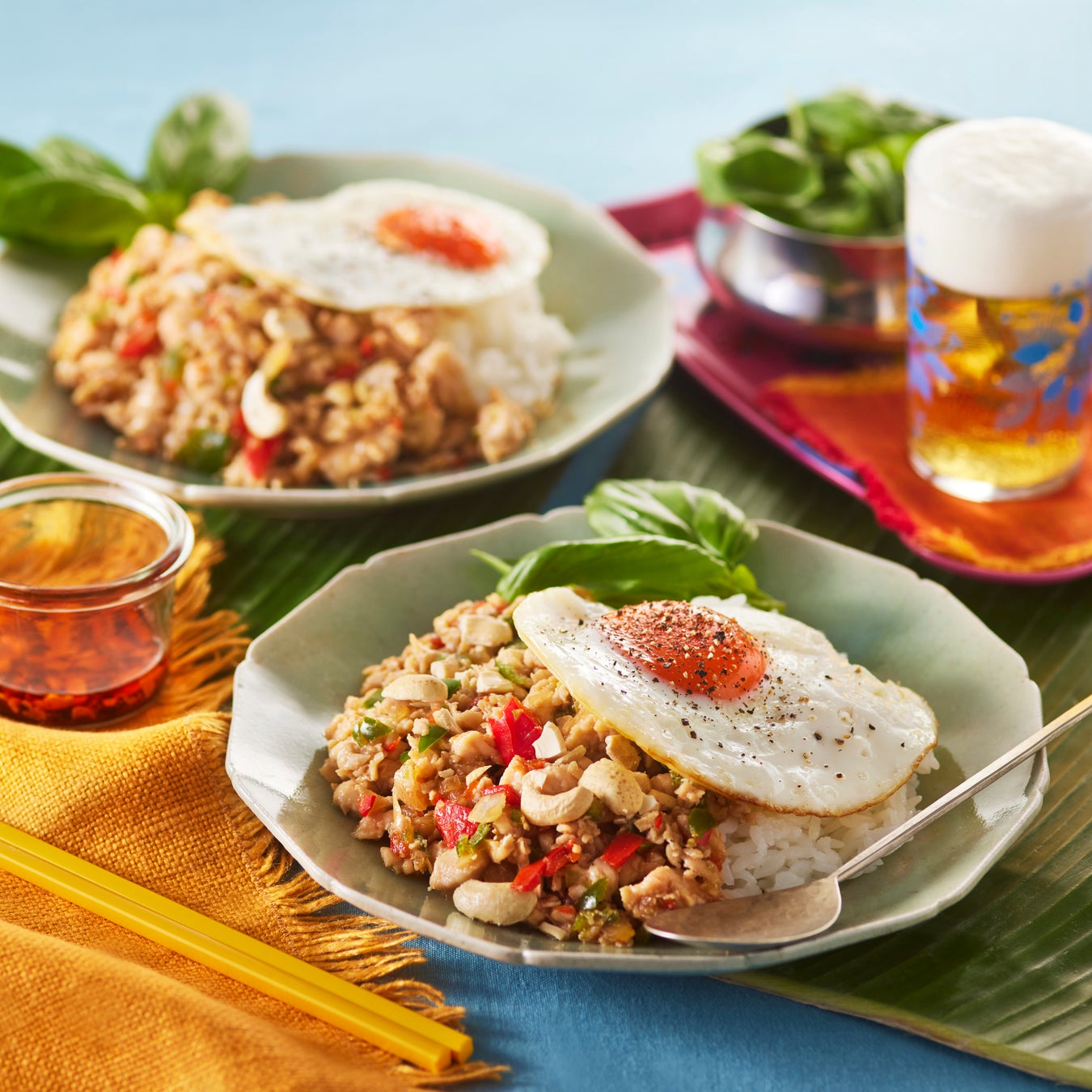 カップはそのまま電子レンジで温められるので、火を使わずに本格的なガパオを愉しめます。