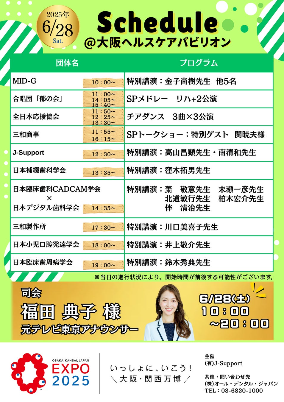 2025年6月28日(土)【大阪・関西万博】大阪ヘルスケアパビリオンにて主催のJ-SupportとADJが強力タッグを組んだ1日をお届け!全体のスケジュールを大公開!