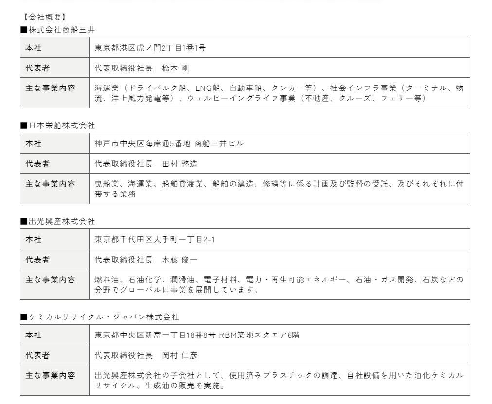 当実証実験を通じて、両社でカーボンニュートラルおよび循環型社会の実現、ならびに海洋環境保全の促進に向けて取り組んでまいります。
