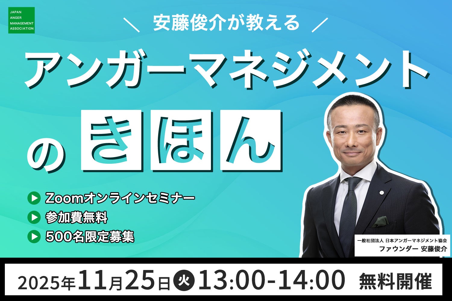 【11月25日(火)13:00開催】日本のアンガーマネジメントの第一人者・安藤俊介による無料オンラインセミナー「アンガーマネジメントの基本」待望のアーカイブ配信決定!