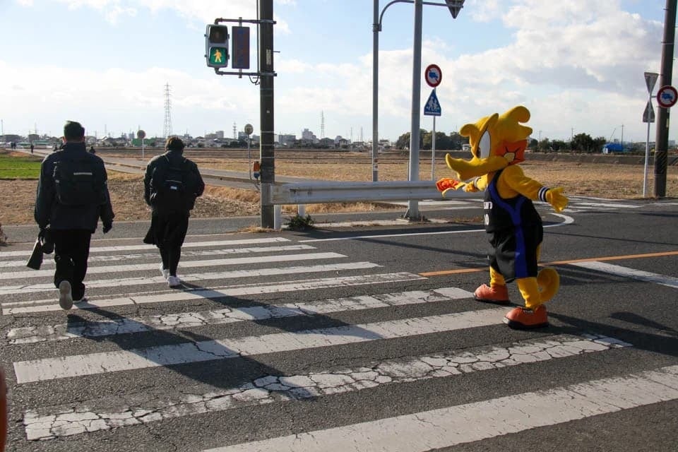 - 「シーホースくん」による交通安全啓発活動(下校指導)の様子