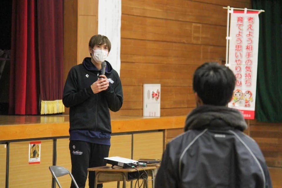 1月30日(月)安城市立篠目中学校にて、岡崎人権啓発活動地域ネットワーク協議会主催「安城市立篠目中学校~人権講演会/バスケットボールクリニック~」を開催し、高島一貴U18ヘッドコーチが講師を務めました。