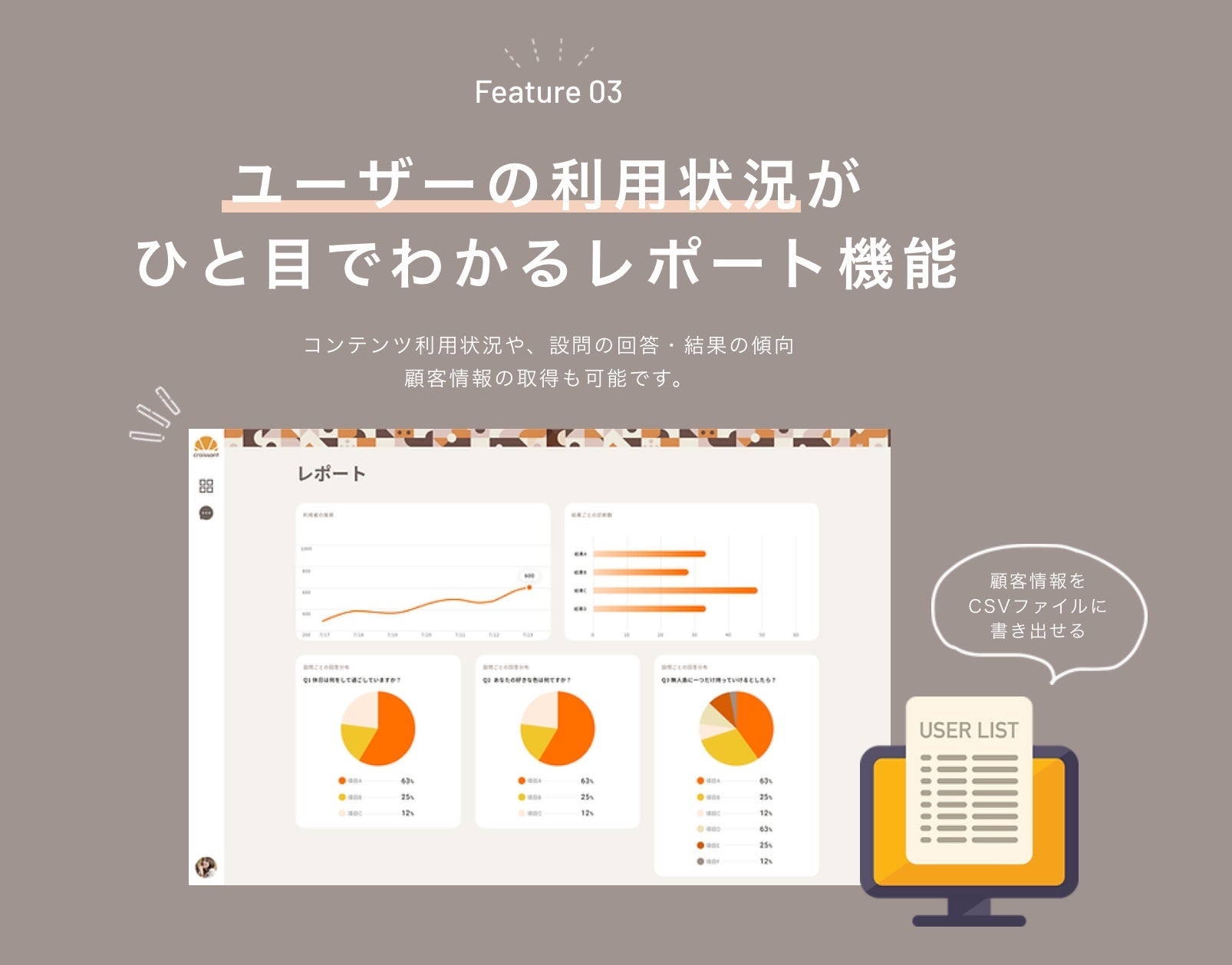3.ユーザーの利用状況がひと目でわかるレポート機能