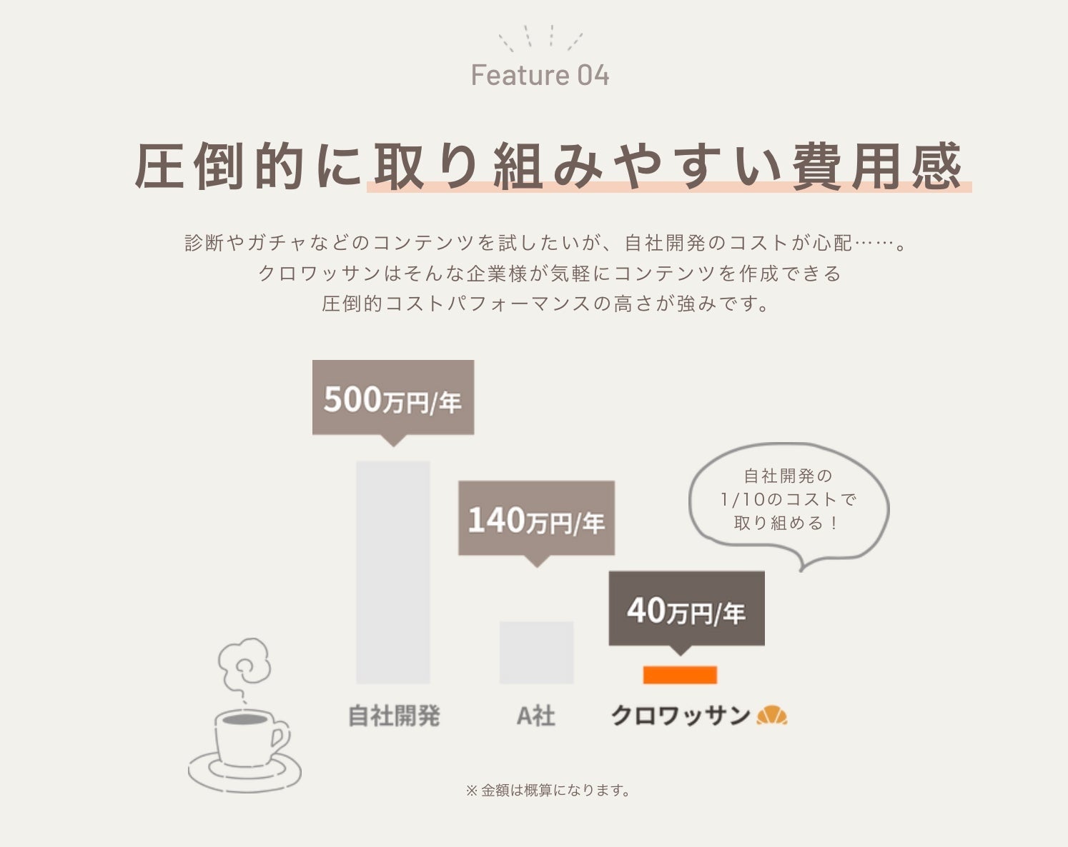 クロワッサンは、そのような企業様が気軽にコンテンツを作成できるよう、圧倒的なコストパフォーマンスの高さを実現いたしました。
