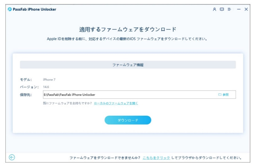 Step3:「iPhoneを探す」がオフの場合は、自動的にApple IDの削除が開始されます。「iPhoneを探す」がオンになる場合は、画面に沿って情報を確認してください。確認後、「ダウンロード」をクリックして、ファームウェアをダウンロードし、終了後に「削除開始」をクリックします。
