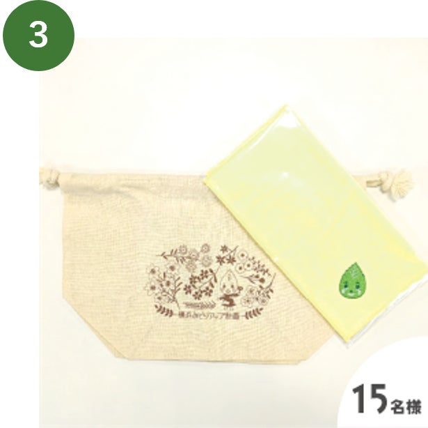 ③ 横浜みどりアップ葉っぴー賞:横浜みどりアップ葉っぴー巾着&ミニタオルセット