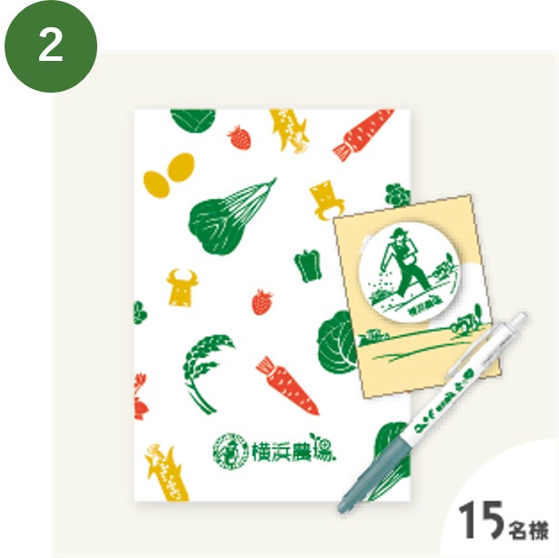 ② 横浜農場賞:塗り絵ノート・ボールペン・マグネット(横浜農場文房具セット)