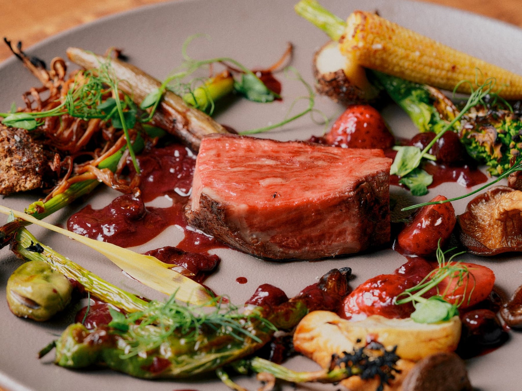 寿司や薪焼グリルなどを組み合わせた一夜限りの特別なコラボレーションコース