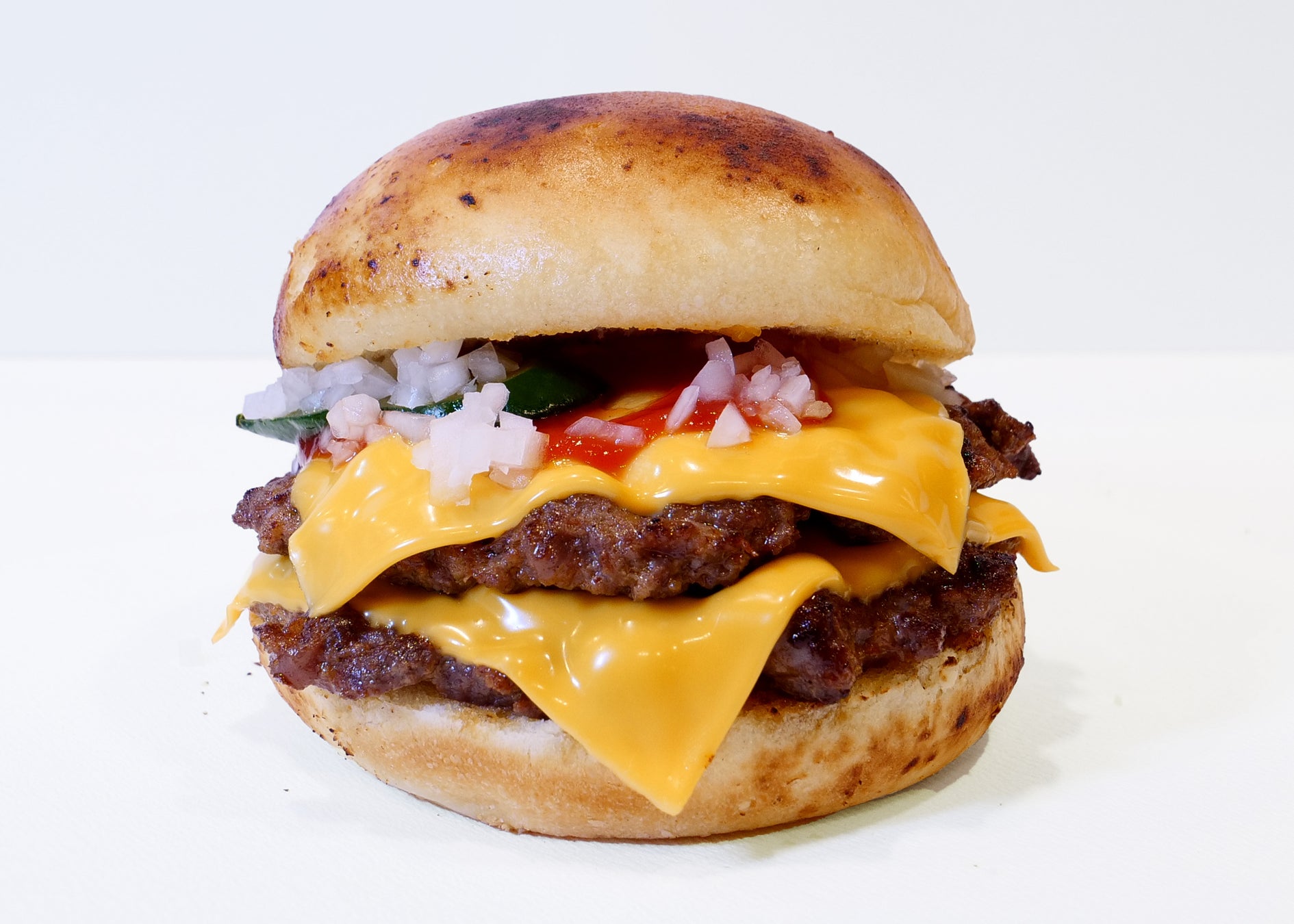 近江牛100%バーガーの美味しさをとことん追求した結果、とにかく出来立てにこだわったハン バーガーを開発。 余熱で火が入ることで風味を失ってしまうため賞味期限は10分に設定しました。 衛生面に最大限考慮し最新設備を駆使した新工場にて加工した近江牛のミンチは鮮度が高く、さらに通常、焼肉店で提供するカルビやロースをミンチにすることで、これまでにない味わいと風味を実現しました。