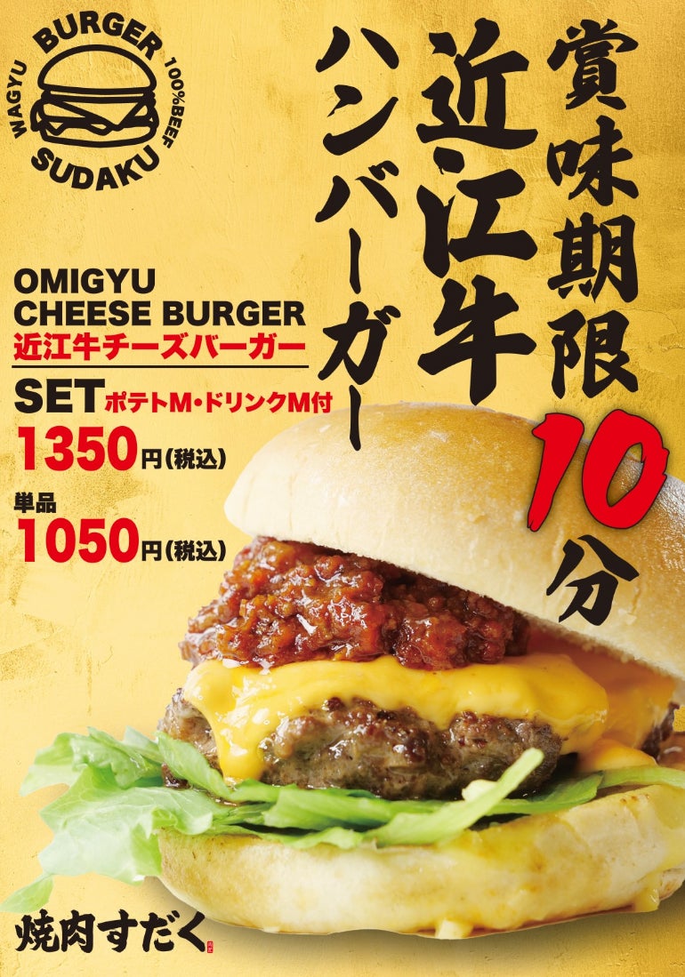 株式会社総合近江牛商社(本社:滋賀県守山市/代表取締役社長:西野 立寛)が運営する焼肉店としては県内 19店舗目(直営)となる『近江牛バーガーSUDAKU』(滋賀県竜王町)を2024年8月29日(木)にグランド オープンいたします