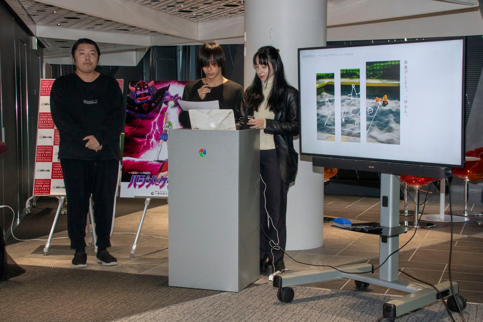 本コンテストの最終発表会では、「新卒採用広告・クリエイティブデザインを考える」をテーマに新卒採用の広告クリエイティブデザインが東京モード学園グラフィック学科の学生より発表されました。