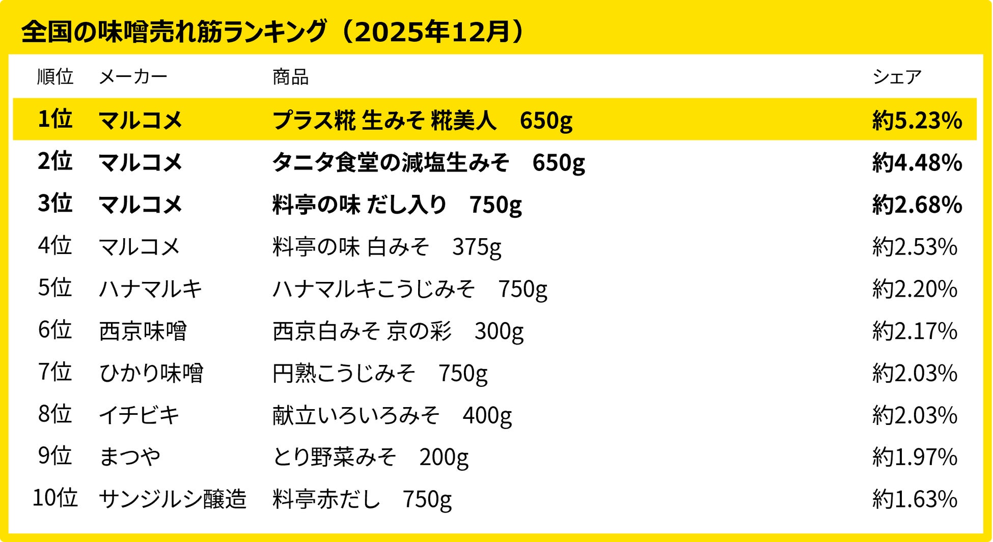 280万人のレシートデータから見る「買い物動向」調査 12月、全国・地方別の味噌売れ筋ランキング