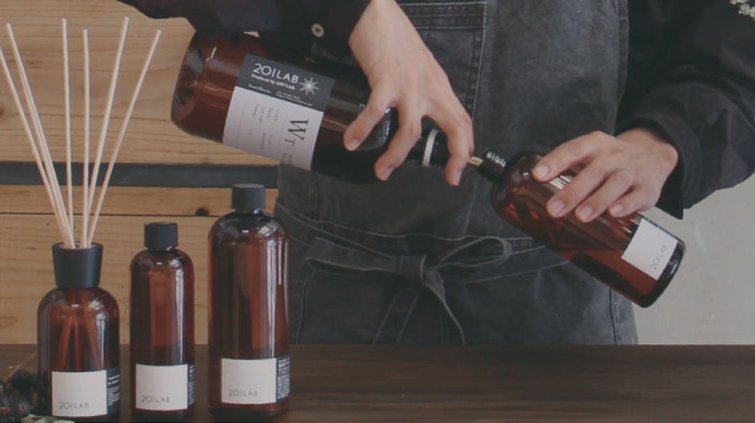 ディフューザーや香水、ルームフレグランスなど、香りに関する製品の企画・製造・販売を行い、「香りを通して心地よさと癒やしを届ける」ことを理念に、香りのあるライフスタイルを提案しています。