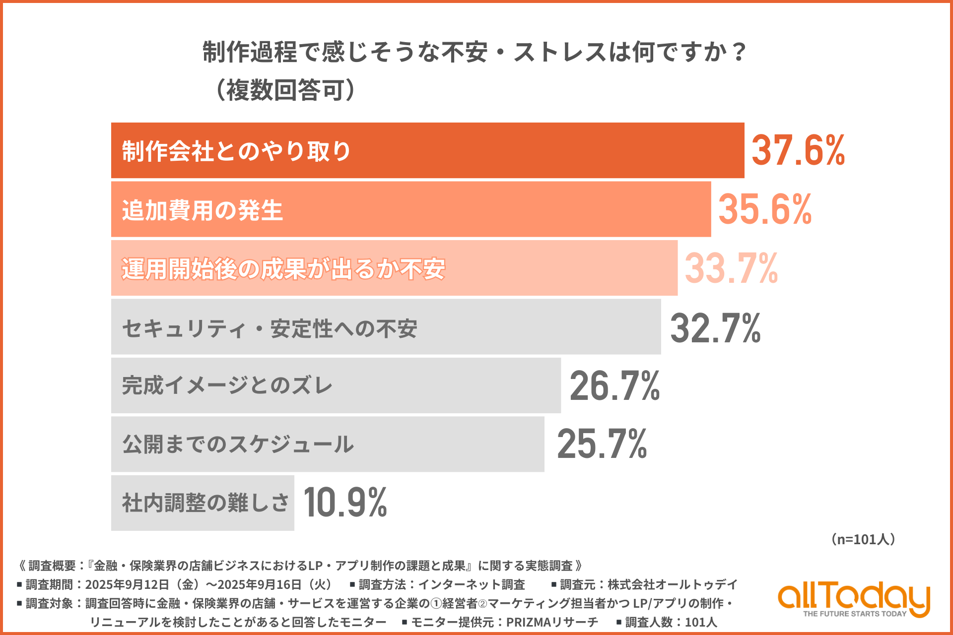 【金融・保険業界に調査】LP・アプリ制作過程で感じそうな不安は「制作会社とのやり取り」が最多。専門性が壁になる実態が浮き彫りに