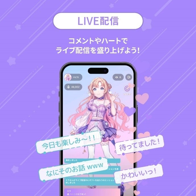 バーチャルライブ配信機能の追加により、これまでのアバターとコミュニティ機能を通じたユーザー同士のコミュニケーションに加え、バーチャルキャラクターを利用した配信者(ライバー)とユーザー(リスナー)によるリアルタイムのコミュニケーションが可能となります。