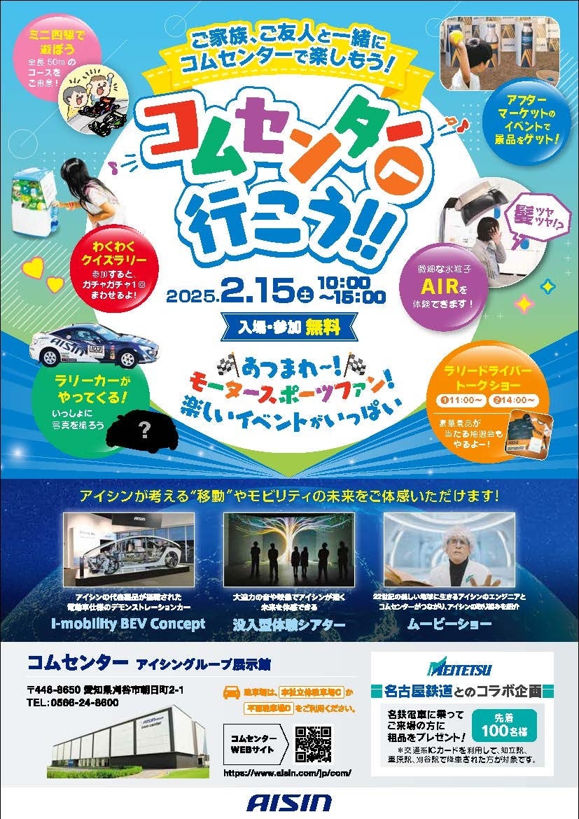 株式会社アイシン(本社:愛知県刈谷市、取締役社長:吉田 守孝)は、2月15日(土)にアイシングループ展示館「コムセンター」を特別開館します。