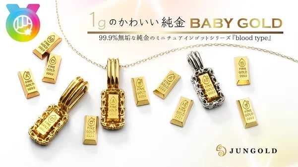 「純金で心躍る体験」をテーマに資産価値のある純金の新しいアイデアに挑戦している株式会社RAIN(本社:東京都台東区雷門、代表:石川 正道)は、「資産価値+心躍る体験」を提供する純金ブランドJUNGOLDから【【1gのかわいい純金【BABYGOLD】★新作は「血液型」シリーズ】プロジェクトをMakuakeにて5月10日(金)からスタートしました。24,800円(税込)。