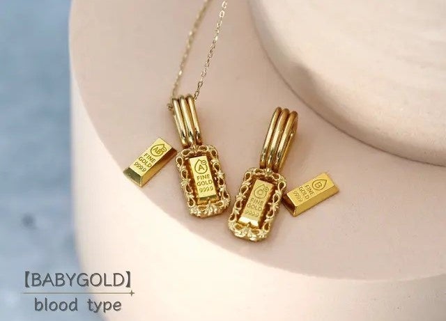 貴重な素材「純度99.9%の純金」が、ミニチュアサイズのかわいいインゴットになったBABYGOLD。今回は血液型をモチーフにしました。
