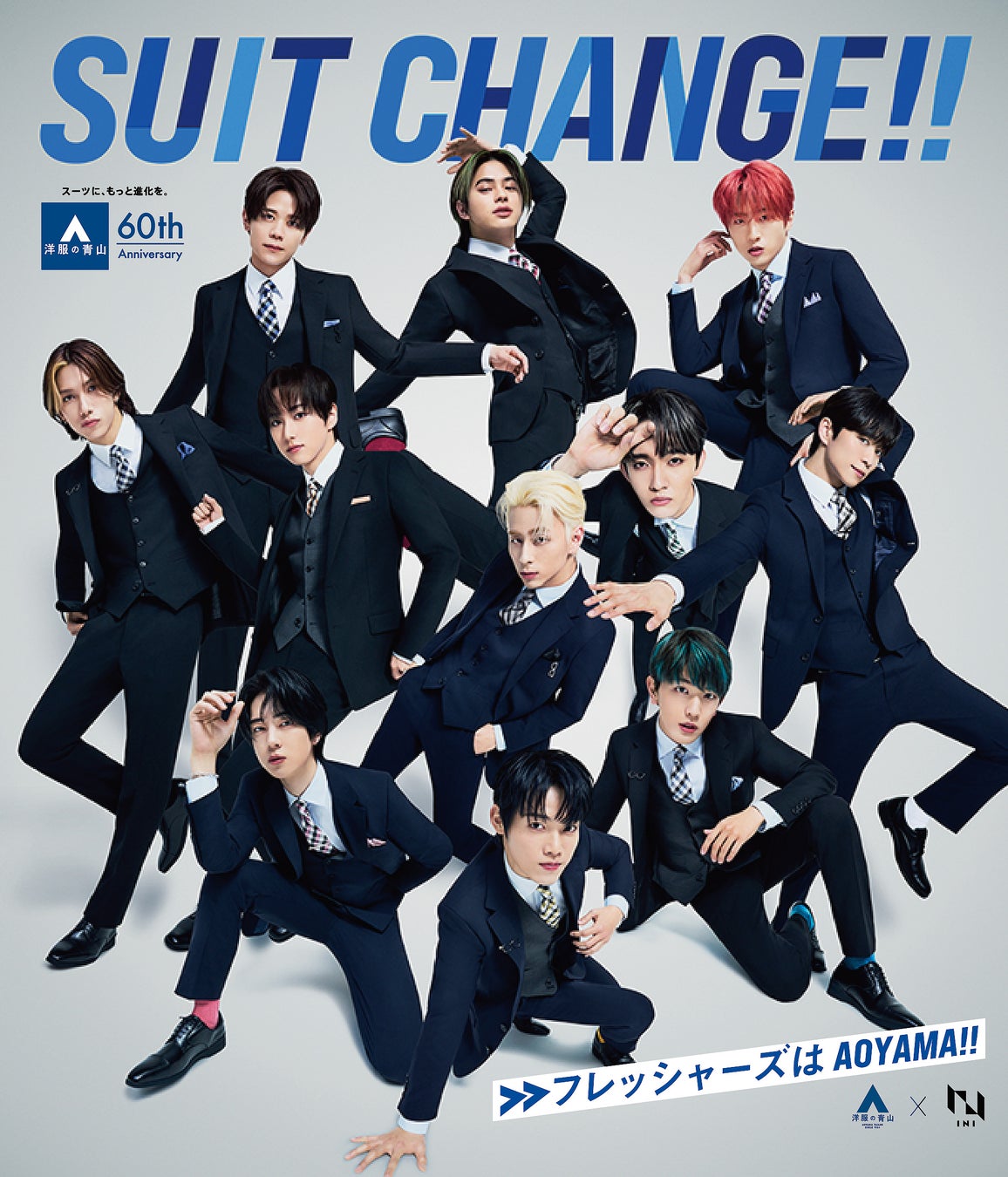 4月から“入学・入社”など、様々な生活環境が変わる(CHANGE)ことにかけて「SUIT CHANGE!!」をテーマに橋本環奈さんとINIさんがビジュアルに登場します。橋本環奈さんはコーディネートを変えながら4つのパターンで登場する他、INIさんは11人それぞれメンバーカラーの“チェック柄ネクタイ”を合わせ、コーディネートの幅広さを発信します。また、今年もINIさんには「SUIT CHANGE!!」をテーマに1月下旬よりスタートするCMにも出演予定です。