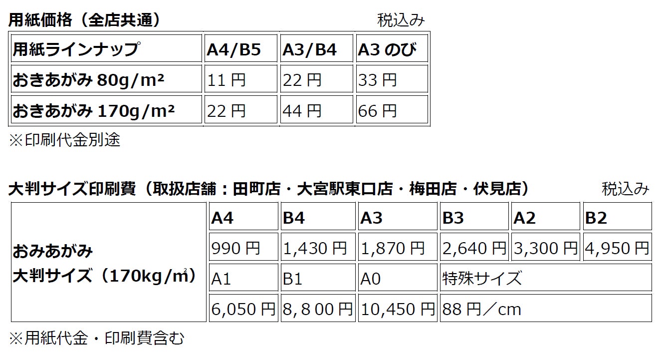 キンコーズ・ジャパン株式会社(本社:東京都港区、代表取締役社長:渡辺 浩基、以下 キンコーズ)は、「石川県 紙の地産地消プロジェクト」(以下 紙の地産地消プロジェクト)から生まれた地域循環型再生紙「おきあがみ」について、キンコーズ4店舗(田町店・大宮駅東口店・梅田店・伏見店)において、これまでより大きなサイズでの印刷対応サービスを先行して開始しました。従来はA3ノビサイズまでとしていた対応範囲を、A0サイズまで拡大し、大判ポスターやイベント装飾など、より幅広い用途でご利用いただけます。