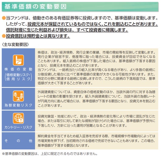 当ファンドのお申込みにあたっては、販売会社よりお渡しする「投資信託説明書(交付目論見書)」の内容を必ずご確認のうえ、ご自身でご判断ください。