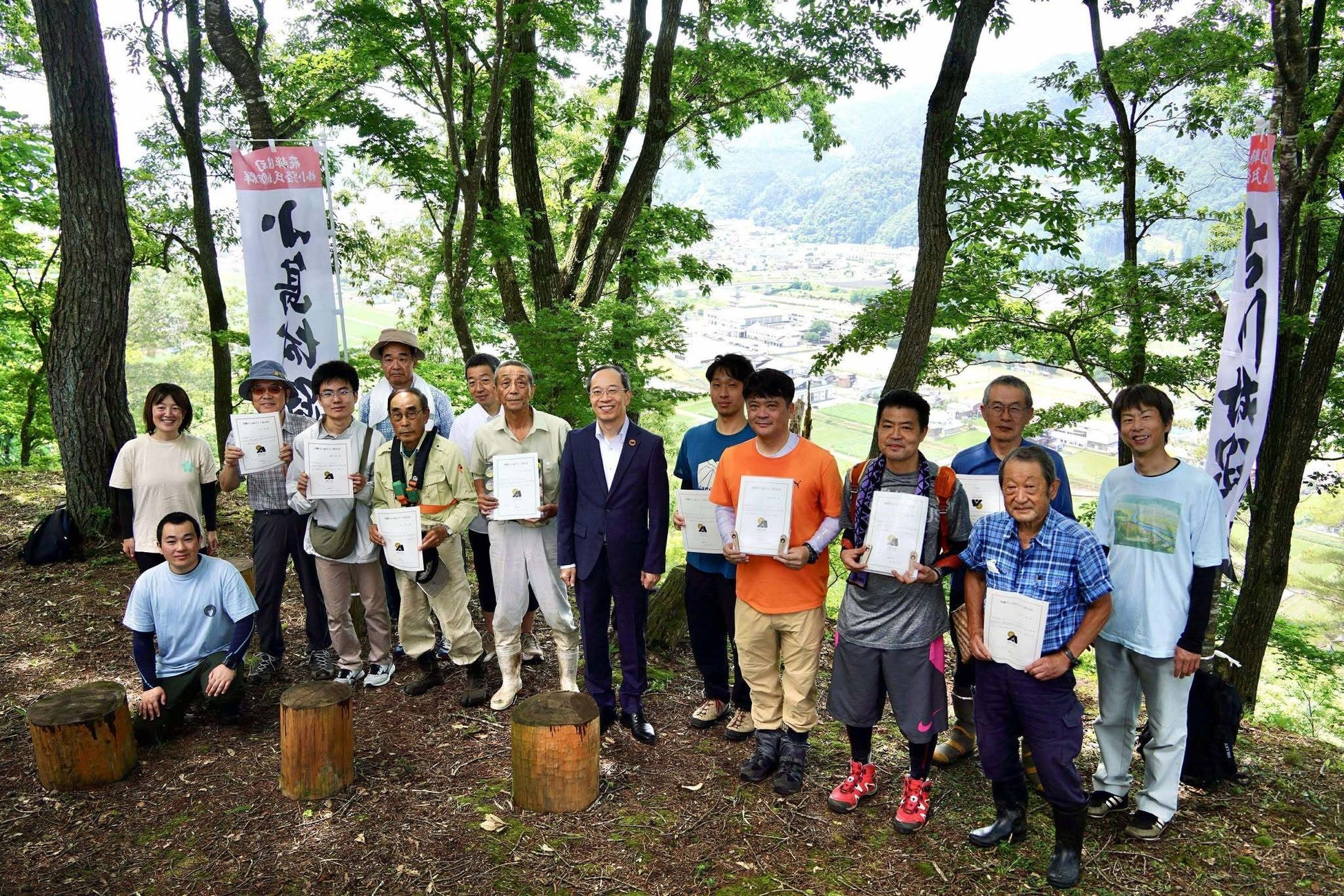 このような現状を受け、より多くの方と山城の価値を共有するために学芸員と同等に価値を伝えてもらう人として、2025年4月に「山城ガイド」を募集し、22名の応募がありました。座学・現地と3回の講座を行い、さらに4回のガイド候補者との懇談会を実施。最後に認定試験を受け、70点以上を獲得した15名が合格し、飛騨市山城ガイドが誕生しました!