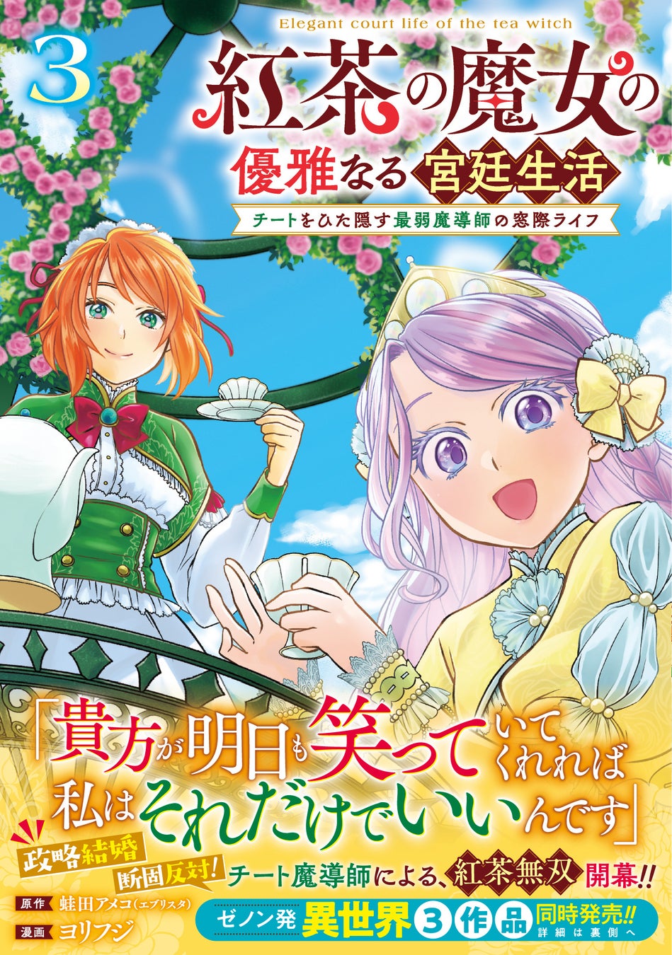 最弱宮廷魔導師が紅茶で無双!!『紅茶の魔女の優雅なる宮廷生活 チートをひた隠す最弱魔導師の窓際ライフ』第3巻好評発売中!!