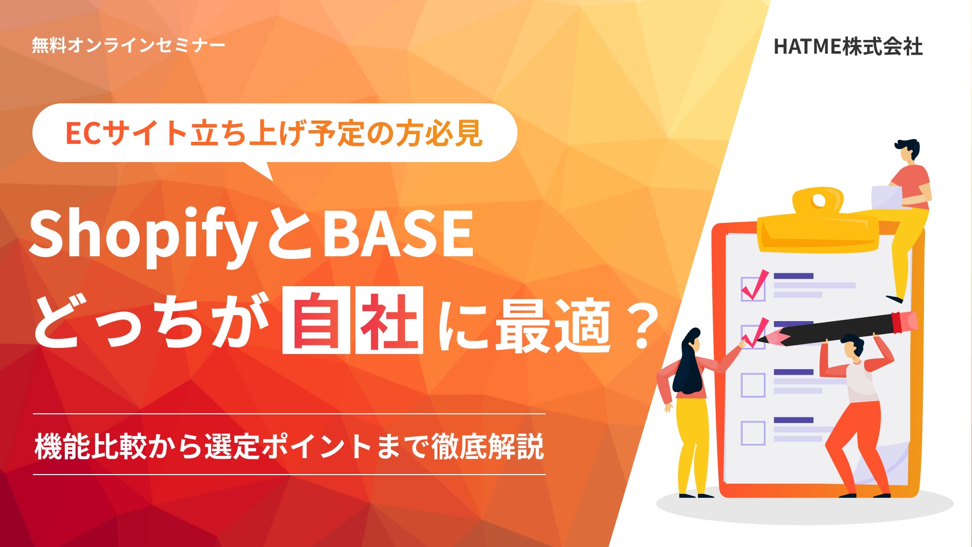 マーケティングアソシエーション株式会社の子会社であるHATME株式会社(本社:東京都台東区 代表取締役:中園広和、以下当社)は2024年9月4日(水)に、ウェブセミナー「【ECサイト立ち上げ予定の方必見】ShopifyとBASEどっちが自社に最適?~機能比較から選定ポイントまで徹底解説~」を、開催いたします。