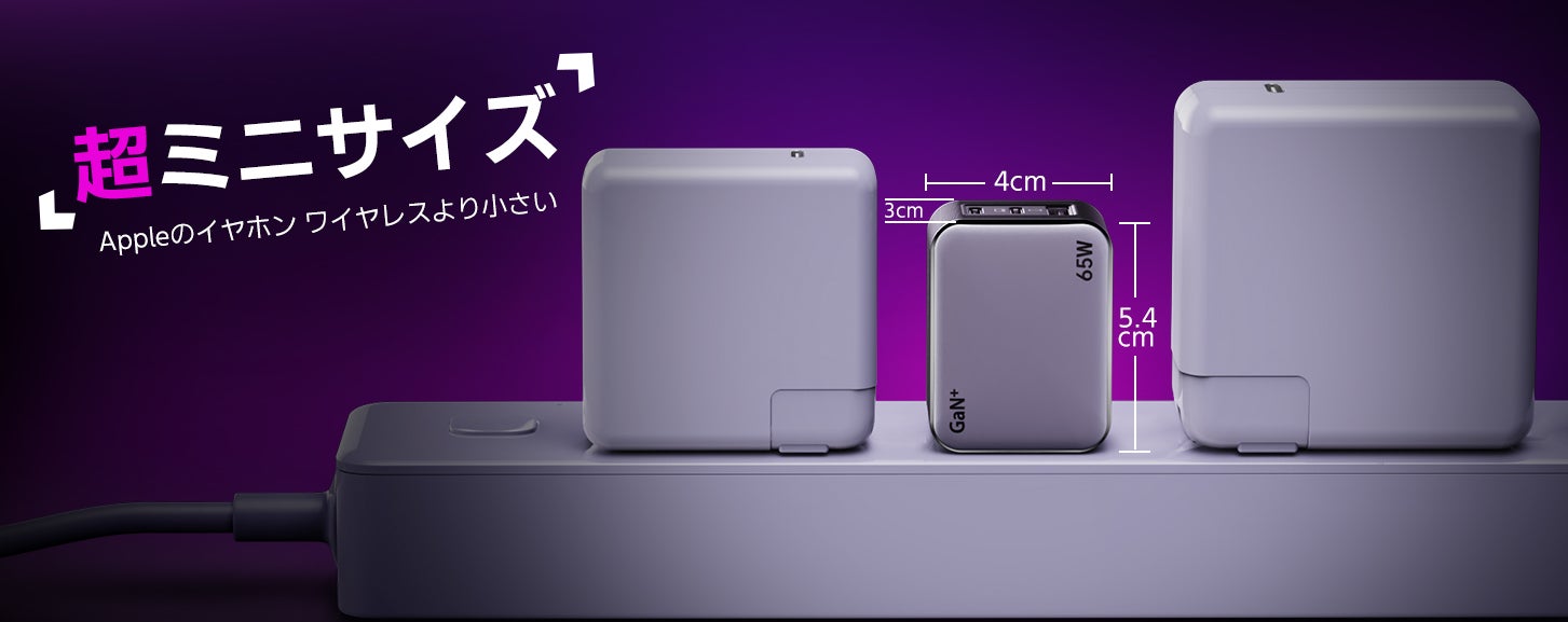 この充電器は、最新のGaNIII(窒化ガリウム)技術を採用しており、業界最小・最軽量の65W USB-C充電器です。サイズはわずか5.4×4×3cm、重さは88gで、持ち運びが非常に便利です。折りたたみ式プラグを採用しているため、バッグに入れても他の物を傷つける心配がありません。旅行や出張に最適なコンパクト急速充電器です。