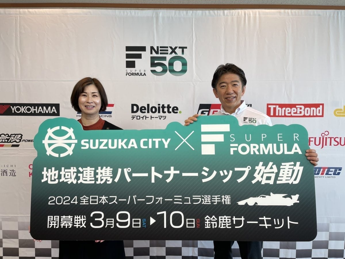 鈴⿅市とSUPER FORMULAを運営する株式会社⽇本レースプロモーション(JRP)は2024年2⽉、モータースポーツ振興と地域活性化等を⽬的に「地域連携パートナーシップ」を締結し、今回の交流は鈴⿅市とのパートナーシップのもと開催に⾄りました。JRPでは地元から愛されるモータースポーツを⽬指し、2024年から国内5サーキットの⽴地⾃治体をはじめ、周辺⾃治体や参戦チームが拠点を置くホームタウンとの連携強化に向けて同締結を進めており、これまでに鈴⿅市(鈴⿅サーキット/三重県)、⽇⽥市(オートポリス/⼤分県)、村⽥町(スポーツランド SUGO/宮城県)、⼩⼭町・御殿場市・裾野市・静岡県(富⼠スピードウェイ/静岡県)、茂⽊町・栃⽊県(モビリティリゾートもてぎ/栃⽊県)、綾瀬市(San-Ei Gen with B-Max/神奈川県)の2県5市3町との締結を完了
