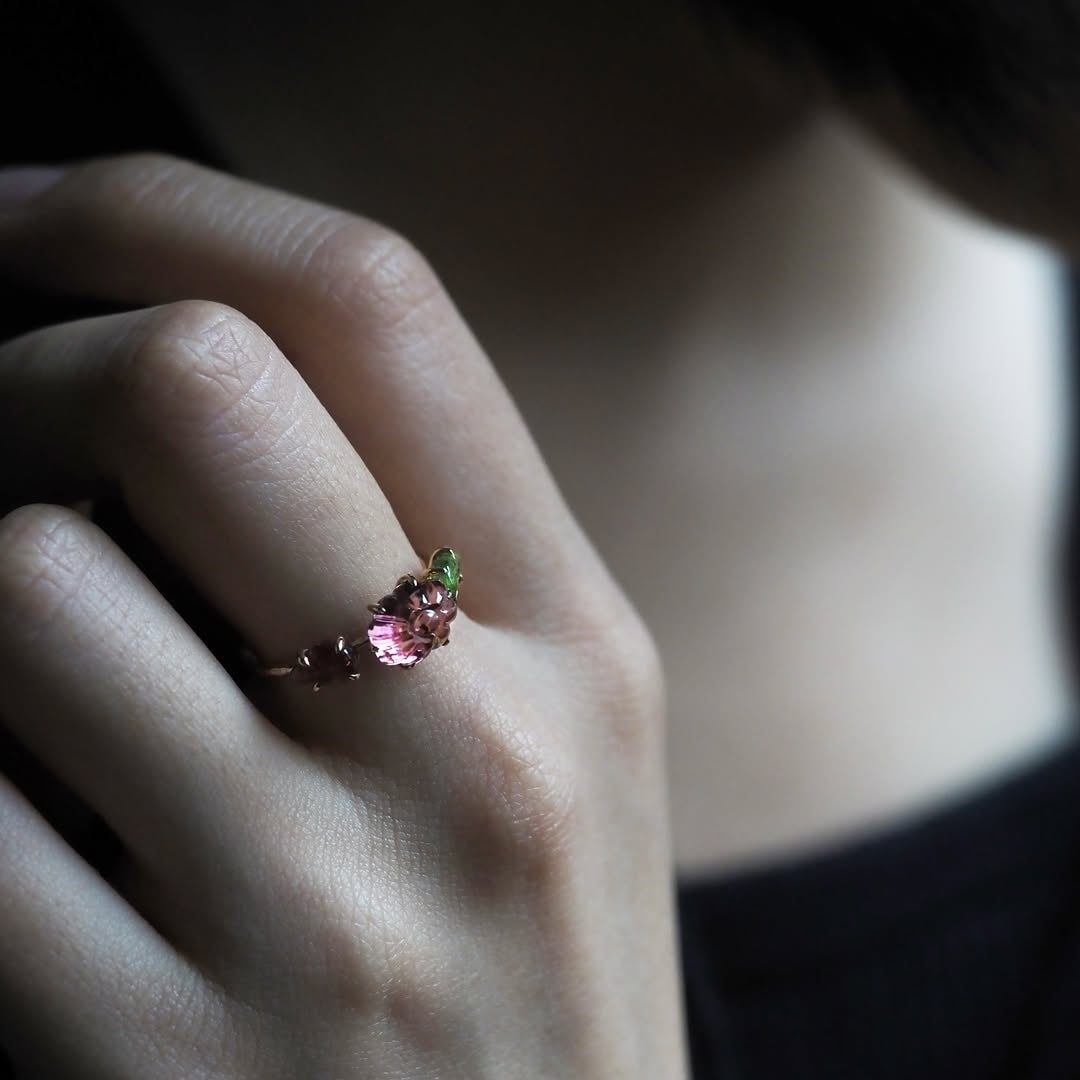 世界中で愛されてきたカーヴィングを、特別な一本のジュエリーへ。花や樹葉、果実を思わせる造形は、一つひとつが異なる表情を持ち、まるで小さな自然のカケラを指に纏うような感覚をもたらします。